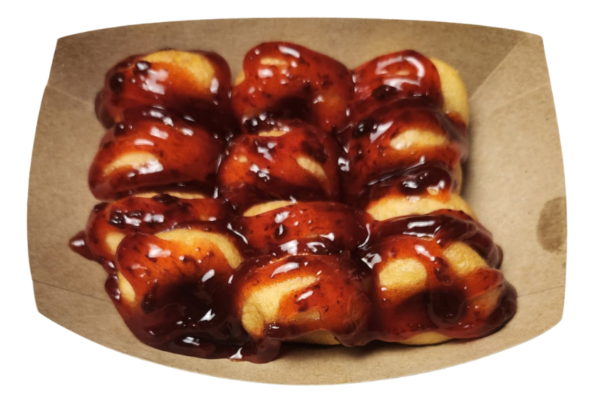 Warm, fluffy mini donuts topped with sweet strawberry flavor for a bright, fruity finish.